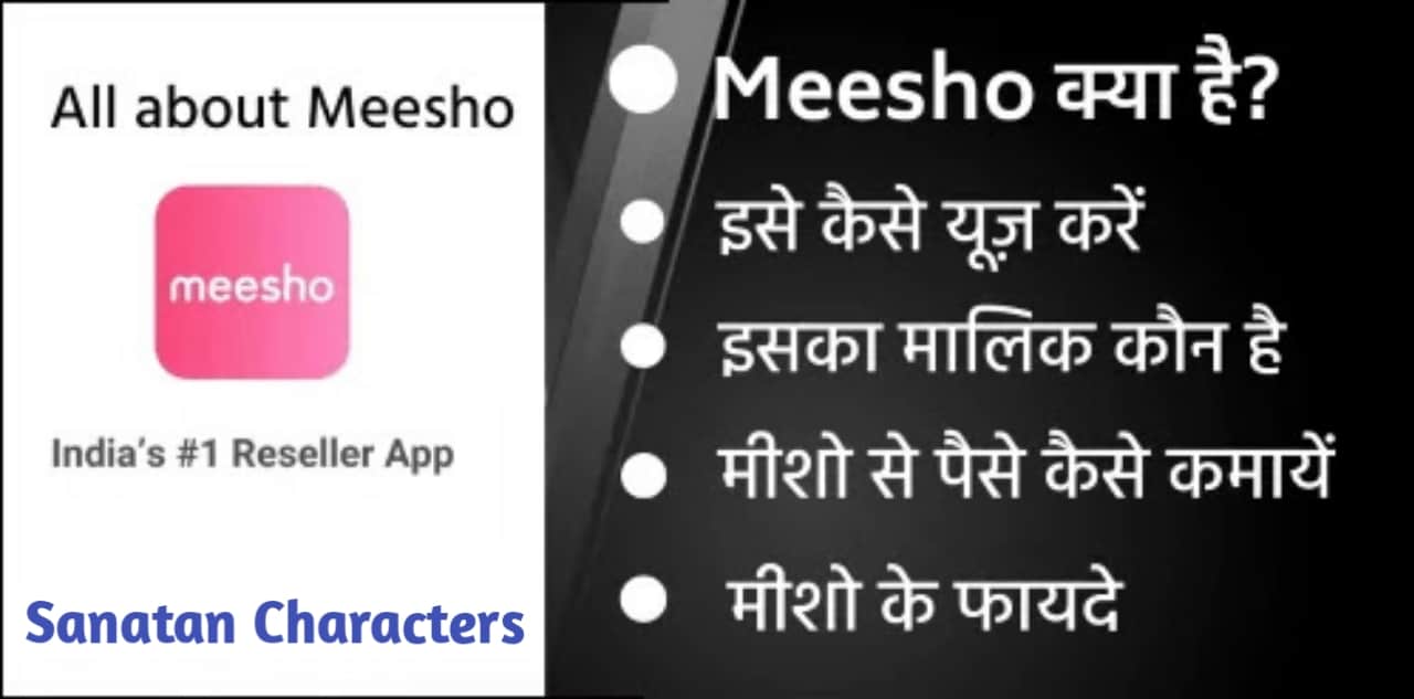 Meesho ek Reselling a)App Hai jismein Bade aur Chhote Sabhi Prakar ke wholesale companies ke product bikte Hain. Dusre shabdon Mein ka hai to yah Amazon aur Flipkart ke jaisa hi ek E-commerce platform hai jismein aap Kisi bhi listed product ko online khareed sakte hain. Meesho app mein aapko Sasti damo mein acche product mil Jaate Hain Kyunki ismein Sabhi cheeje wholesale rate mein bikati hai.Yahi Nahin Iske alava digital marketing app bhi hai jismein aap online business bhi kar sakte hain, vah bhi Bina investment ke. Apne Logon Ko bolate Hue Suna Hoga Ki business Shuru karne ke liye Lakhon rupaye ki jarurat padati hai. Isme aap khud ke product bhi list kar sakte hain.
